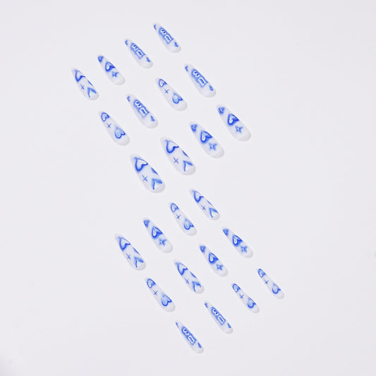 Denim Blue Heart Graffiti Coffin 24PCS Free Size Nails JP1145