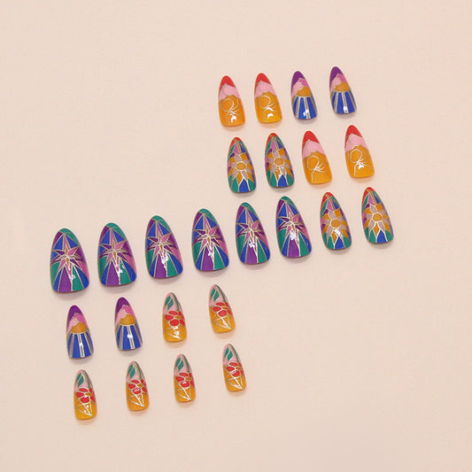 Gothic enamel glass Almond 24PCS Free Size Press on Nails W1753