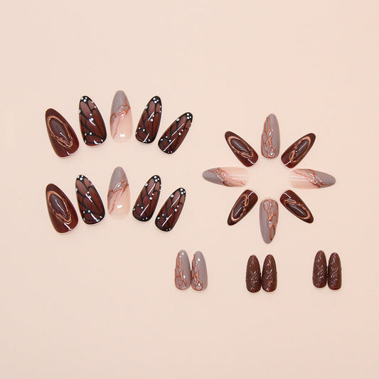 Finch Butterfly Almond 24PCS Free Size Press on Nails W1713