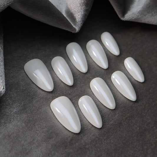 White Mother of Pearl Handmade Almond Nails A455
