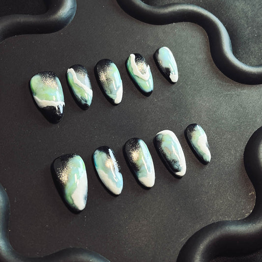 Vendor:NoirNailRegular price $15.90 USDRegular priceUnit price / per$25.00 USDSale price $15.90 USDBlue Aurora Marble Handmade Almond Nails X1002