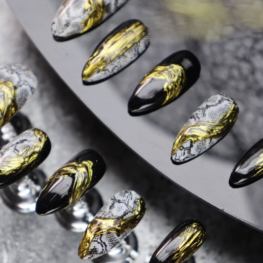Regular price $13.90 USDRegular priceUnit price / per$27.90 USDSale price $13.90 USDGilded Python Pattern Handmade Almond Press on Nails A1151
