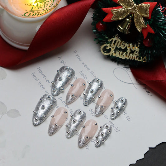 Regular price $15.90 USDRegular priceUnit price / per$27.00 USDSale price $15.90 USDSilver Christmas tree Handmade Coffin Press On Nails A857