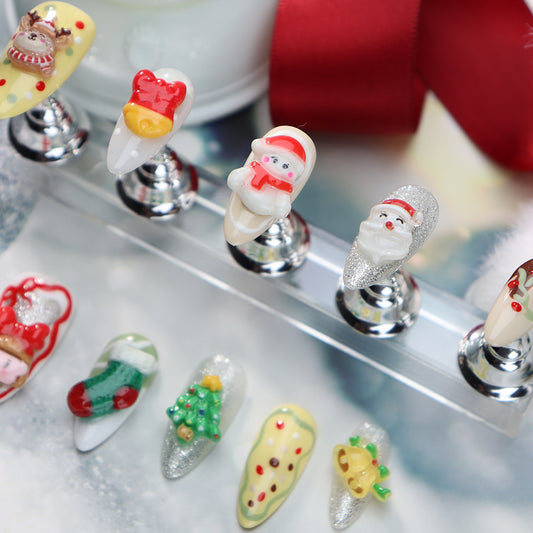 Santa Claus and Elk Handmade Coffin Press On Nails A936