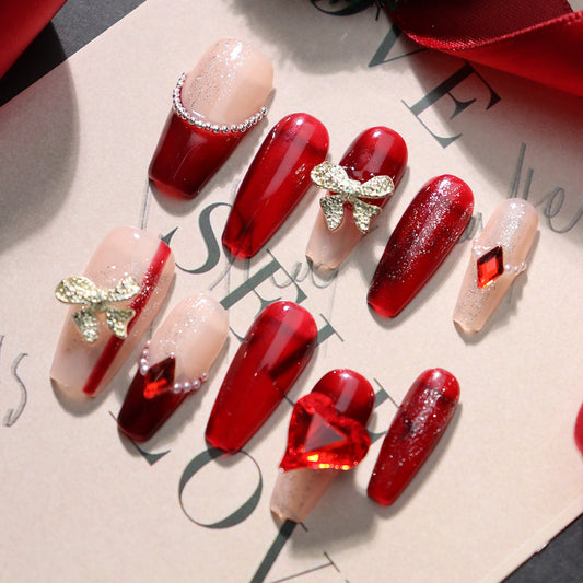Christmas Red Dancing Shoes Handmade Almond Nails A984