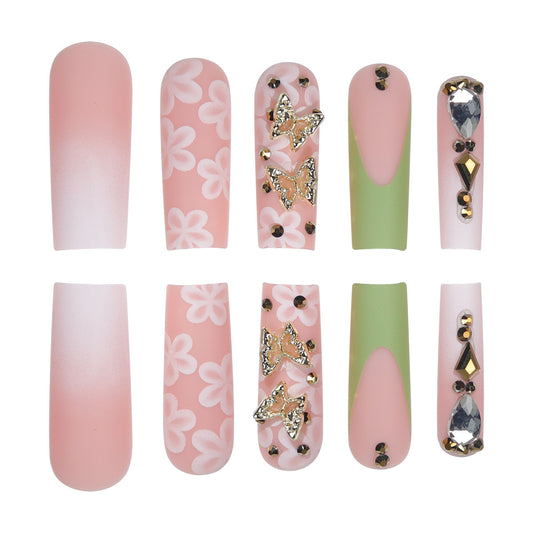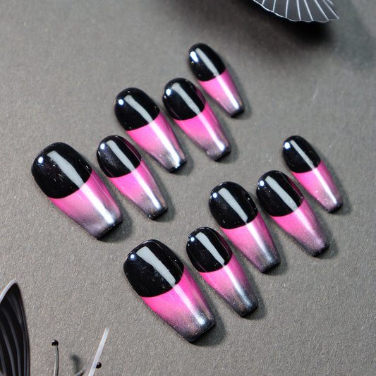 Gradient Glitter French Long Tip Handmade Coffin Nails A679