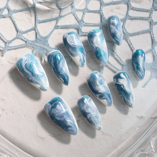 Vendor:NoirNailRegular price $13.90 USDRegular priceUnit price / per$22.00 USDSale price $13.90 USDBlue Transparent Crystal Handmade Almond Nails A643
