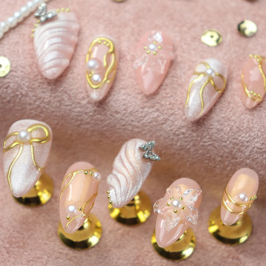 Regular price $26.90 USDRegular priceUnit price / per$27.00 USDSale price $26.90 USDGold Bow Cat Eye Handmade Almond Nails A913