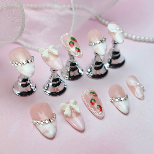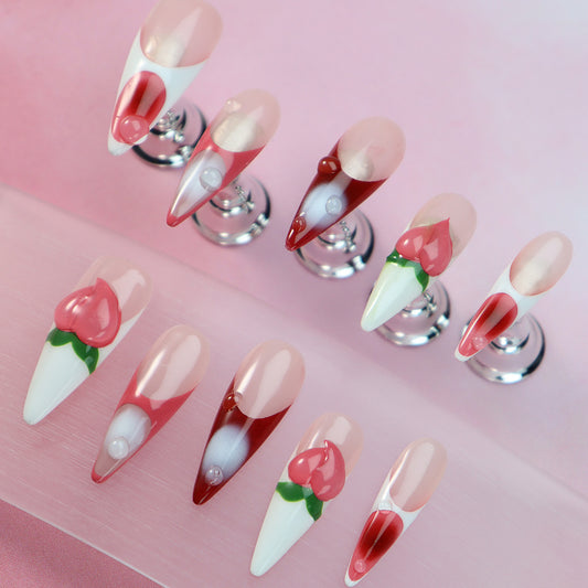 Sweetheart Strawberry Handmade Stiletto Nails OM1059