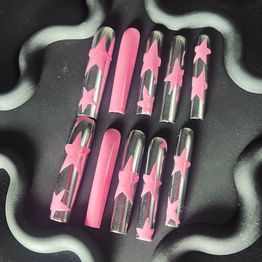 Regular price $29.90 USDRegular priceUnit price / per$58.00 USDSale price $29.90 USDPink Star Handmade Square Nails OM1038