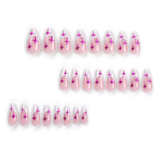 Purple Star French Tip Almond 24PCS Free Size Nails JP2953