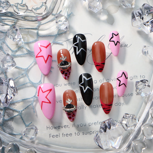 Star Sweet Cool Girl Handmade Almond Nails A651