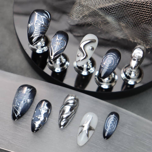 Vendor:NoirNailRegular price $15.90 USDRegular priceUnit price / per$26.00 USDSale price $15.90 USDPunk Futuristic Color Matching Y2K Handmade Stiletto Press on Nails A882