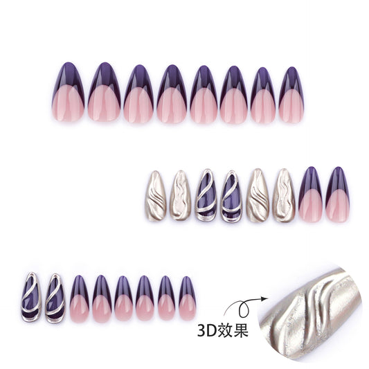 Future Metallic Y2K Deep French Almond 24PCS Free Size Press on Nails JP3515