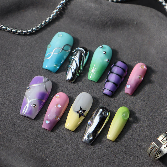 Punk Futuristic Color Matching Y2K Handmade Stiletto Press on Nails A882