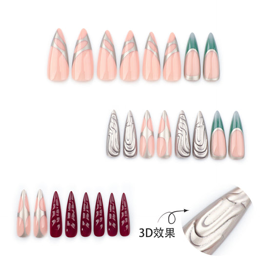 Future Metallic Y2K Stiletto 24PCS Free Size Press on Nails JP3523