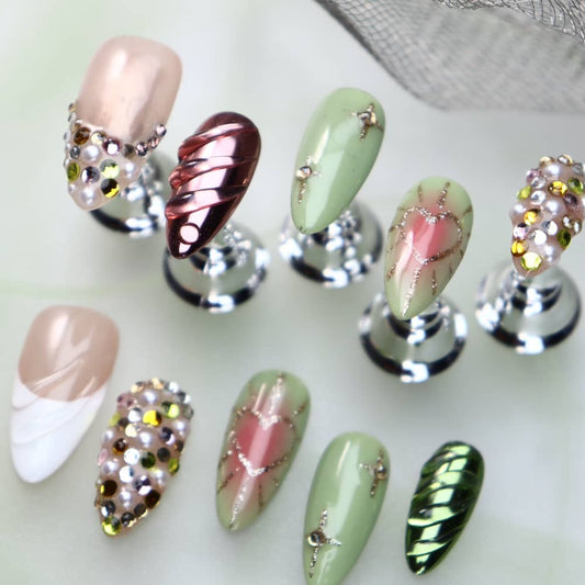 Peppermint Mambo Y2K Handmade Almond Press On Nails