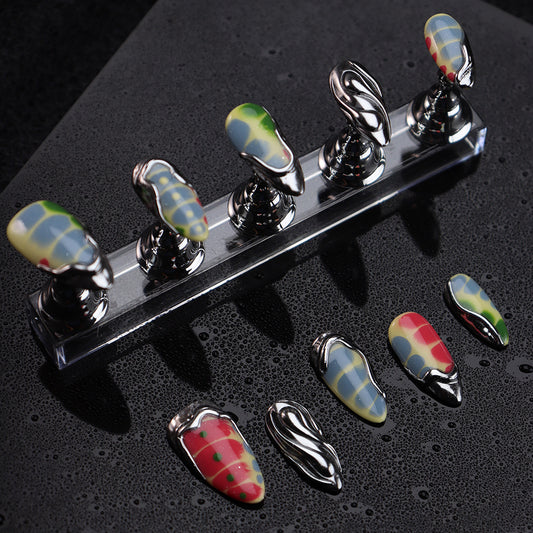 Color Metal Punk French Tip Handmade Almond Nails A750
