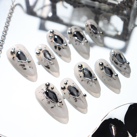 Pearl jellyfish Handmade Almond Press On Nails A806