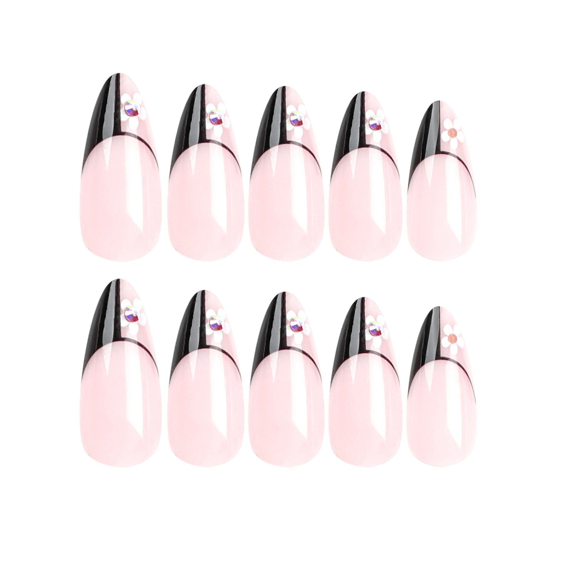 French Geometric Black Stitching Almond 24PCS Free Size Press on Nails JP2961
