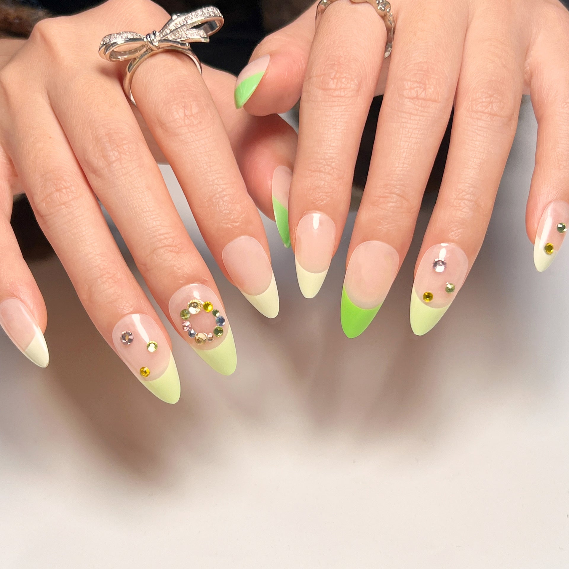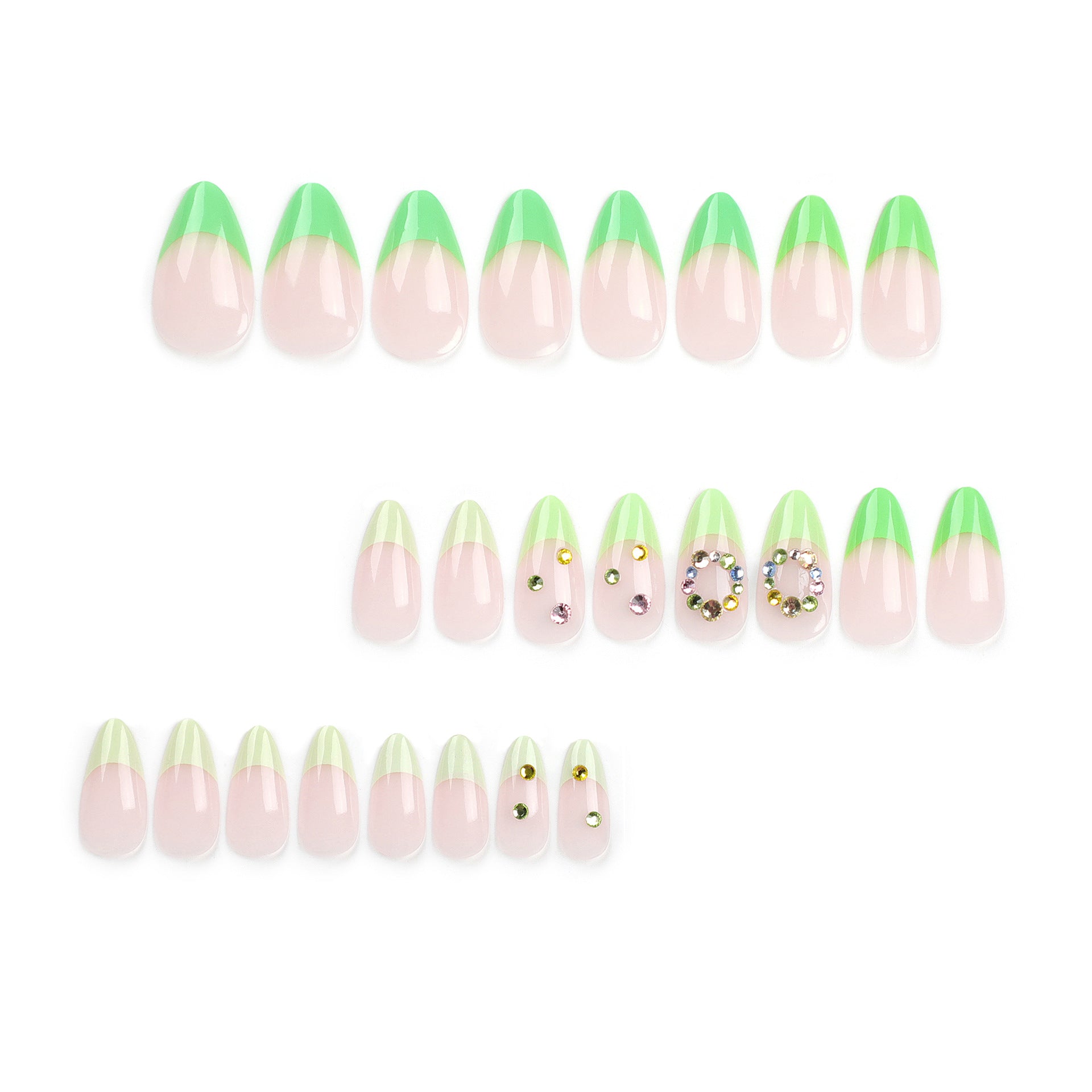 Mint Mambo French Tip Almond 24PCS Free Size Press on Nails JP2992
