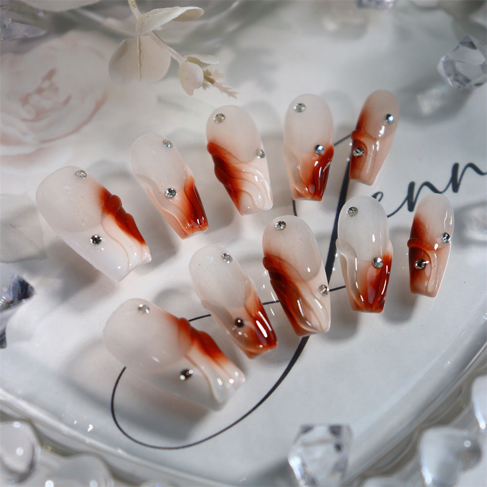 Tiramisu French Tip Handmade Coffin Press on Nails A544