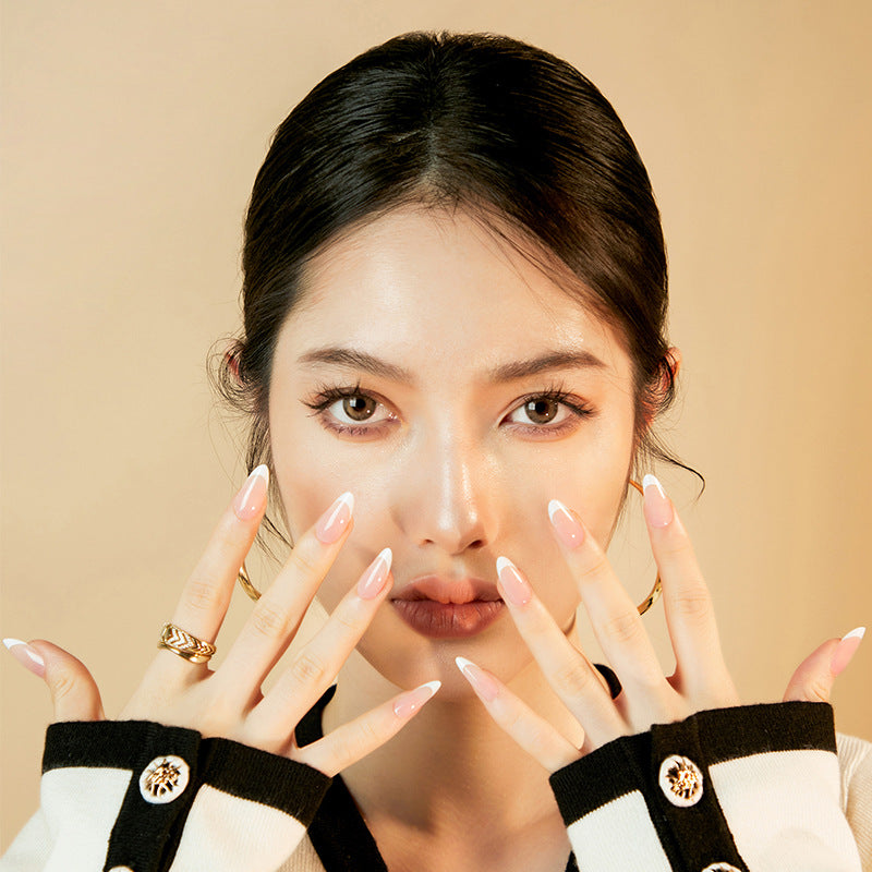 Classic French Tip Almond 30PCS Free Size Press on Nails ZG011