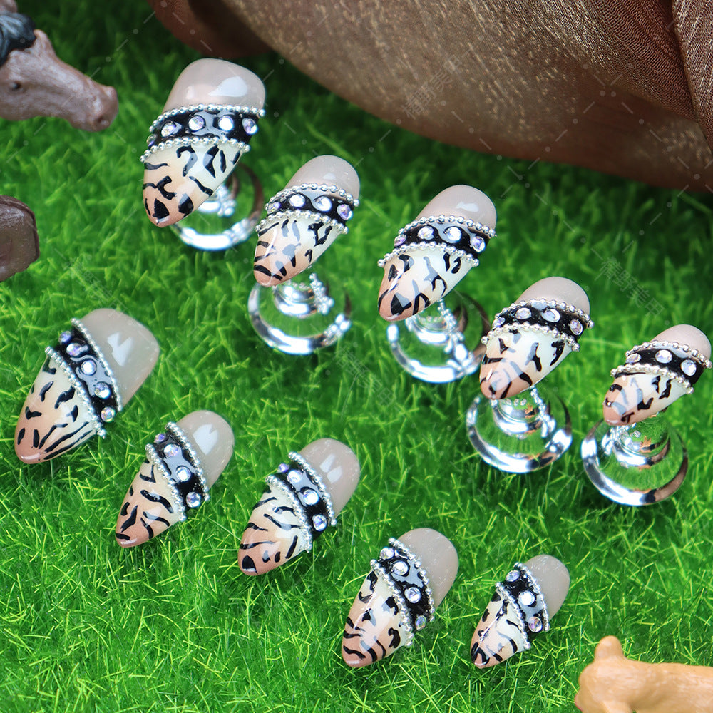 Maillard Zebra Pattern Rhinestones Handmade Almond Press On Nails A1199