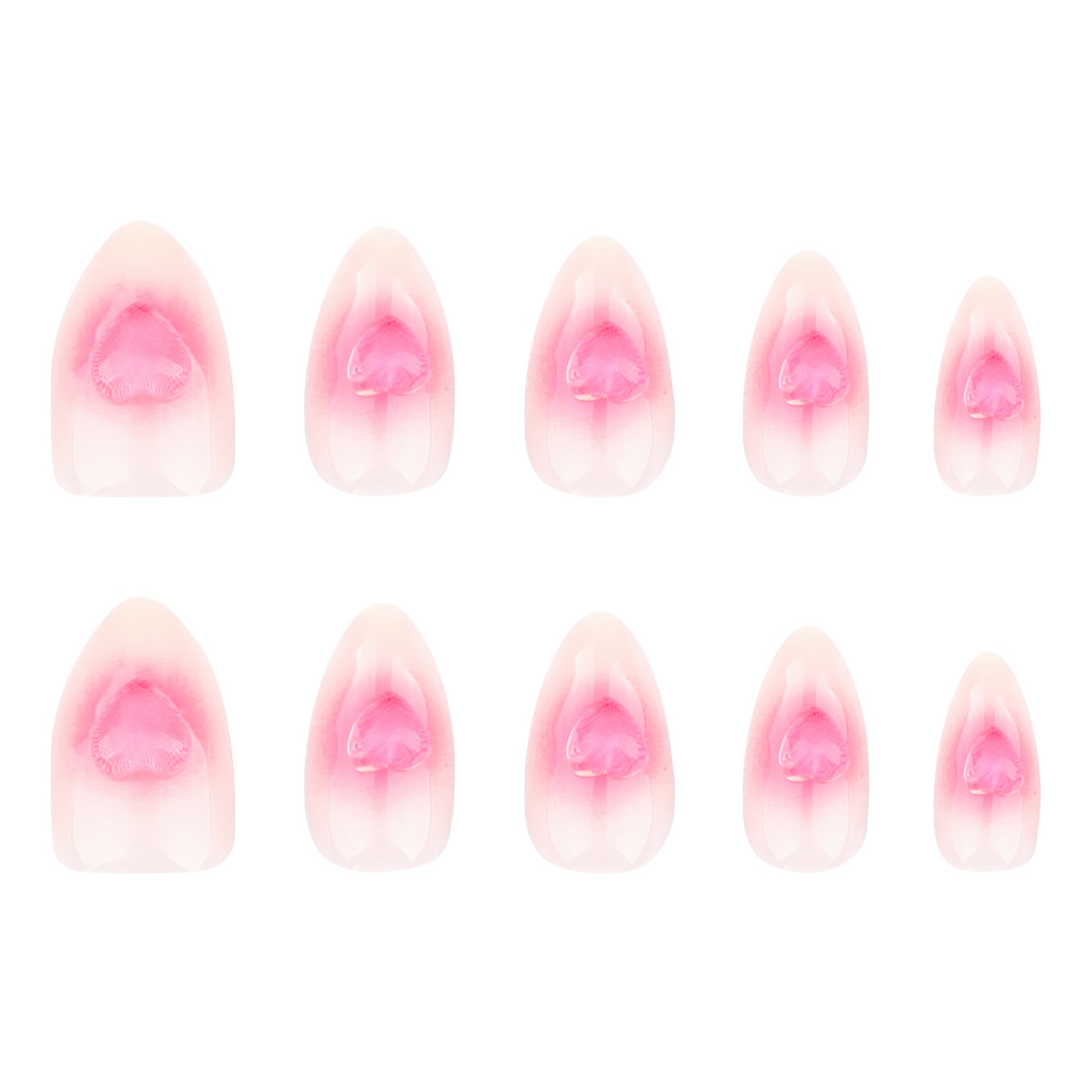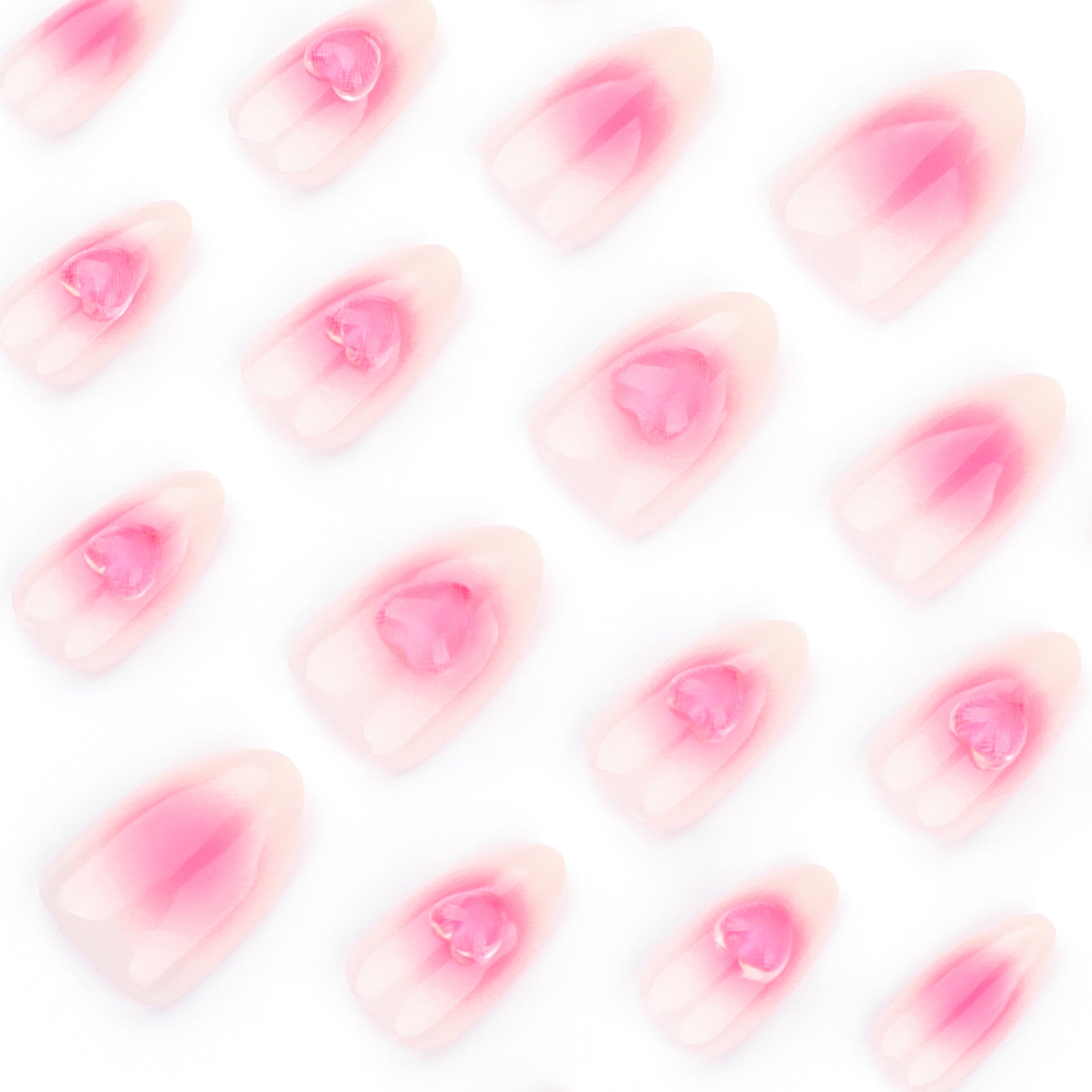 3D Peach Pink Heart Almond 24PCS Free Size Press on Nails JP3577