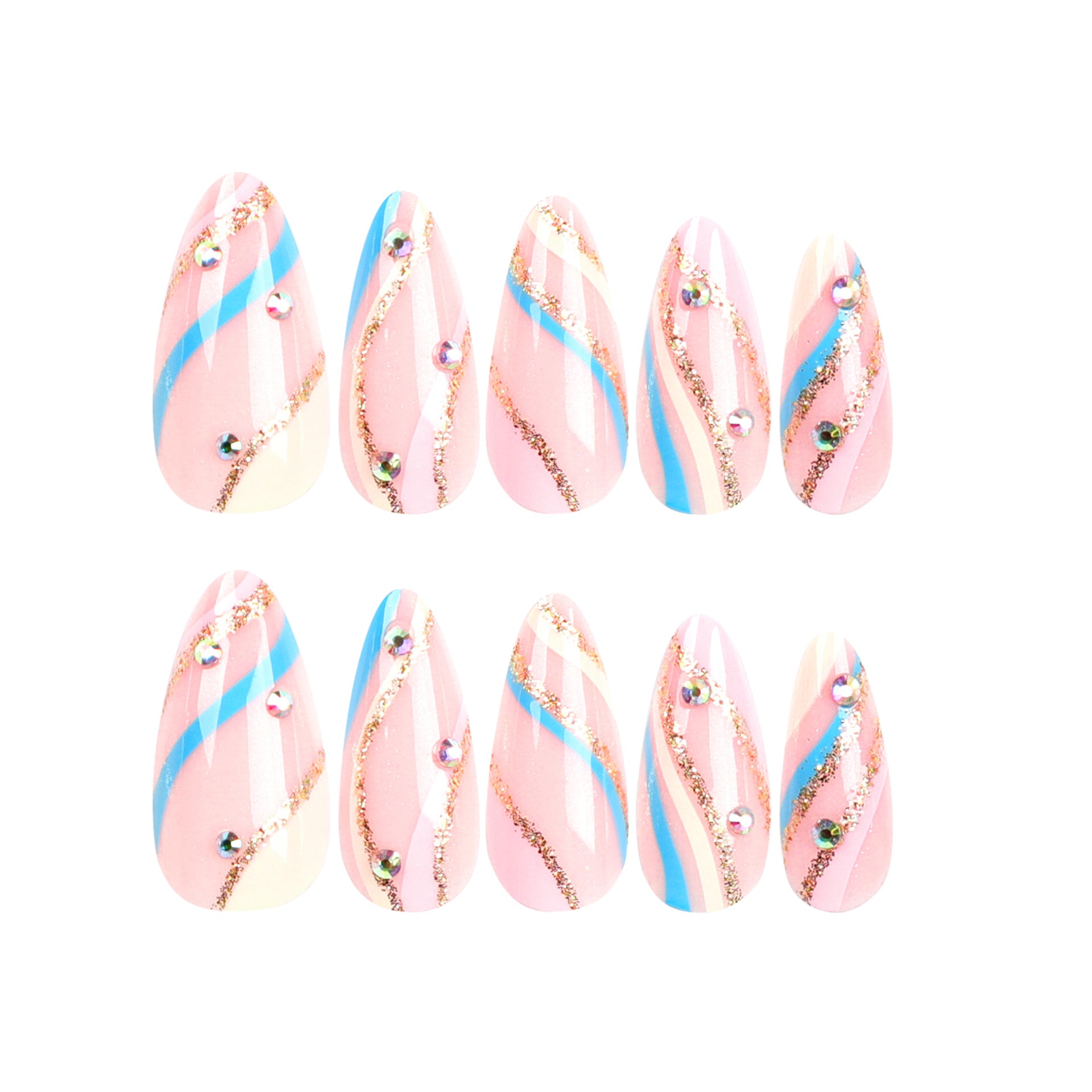 Abstract Lines Almond 24PCS Free Size Press on Nails JP2988