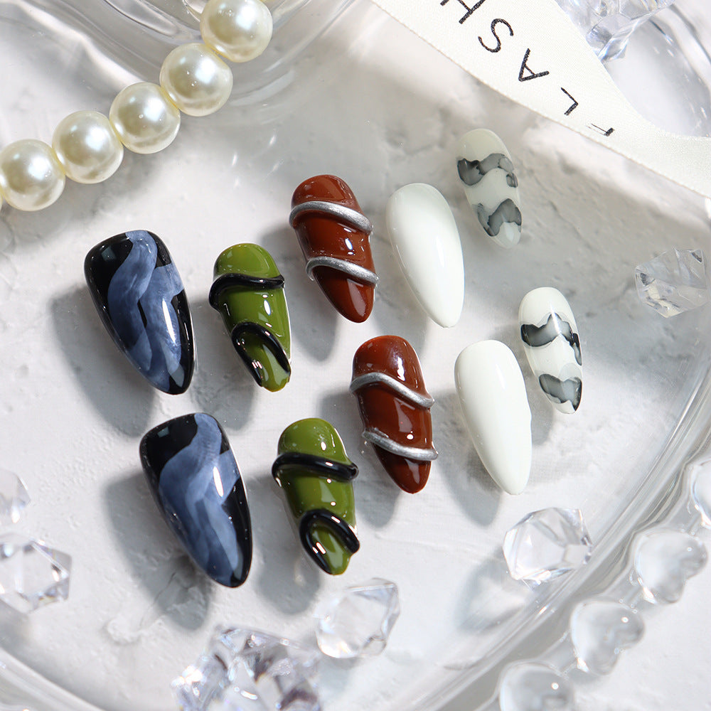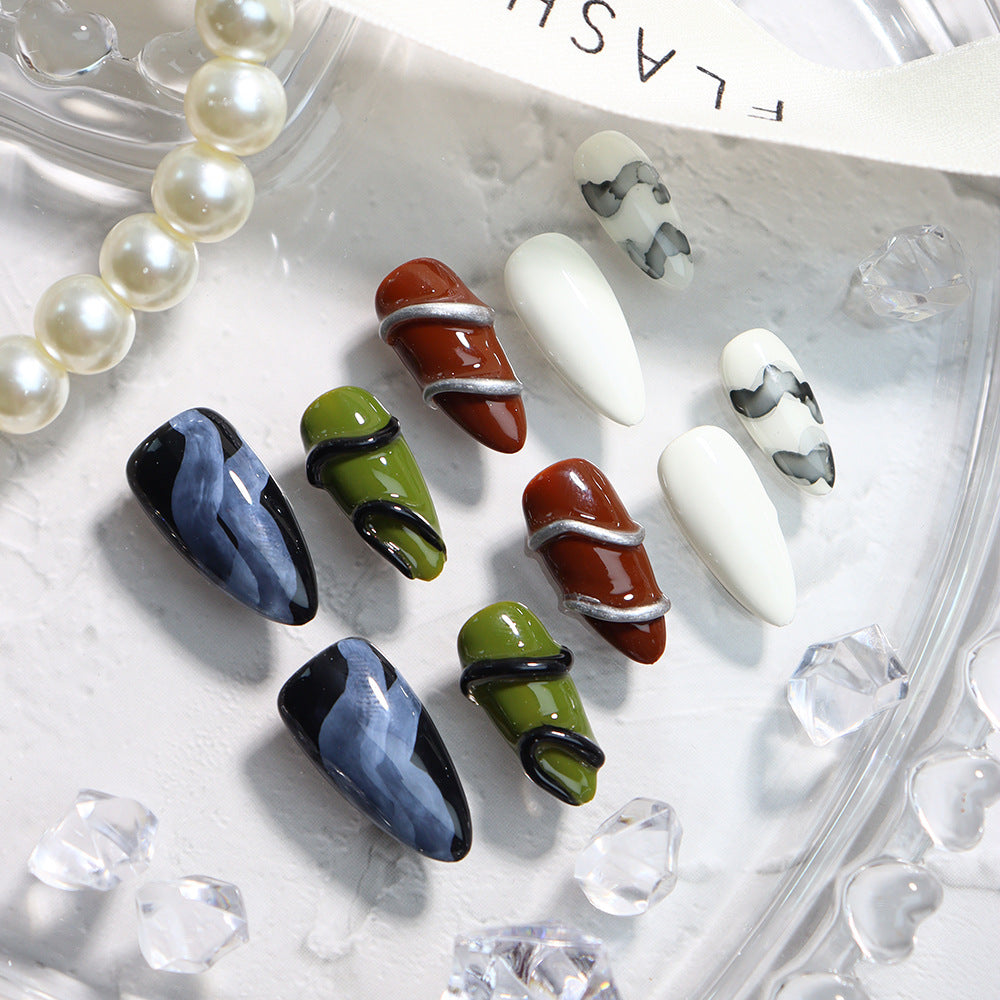 Maillard Psychedelic Punk Handmade Almond Press On Nails A666