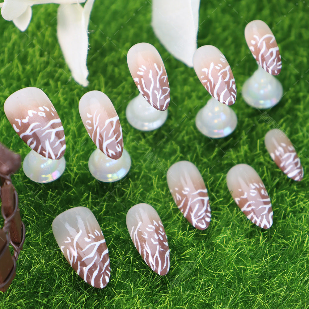 Maillard Zebra Print Deep French Handmade Almond Press on Nails A1208