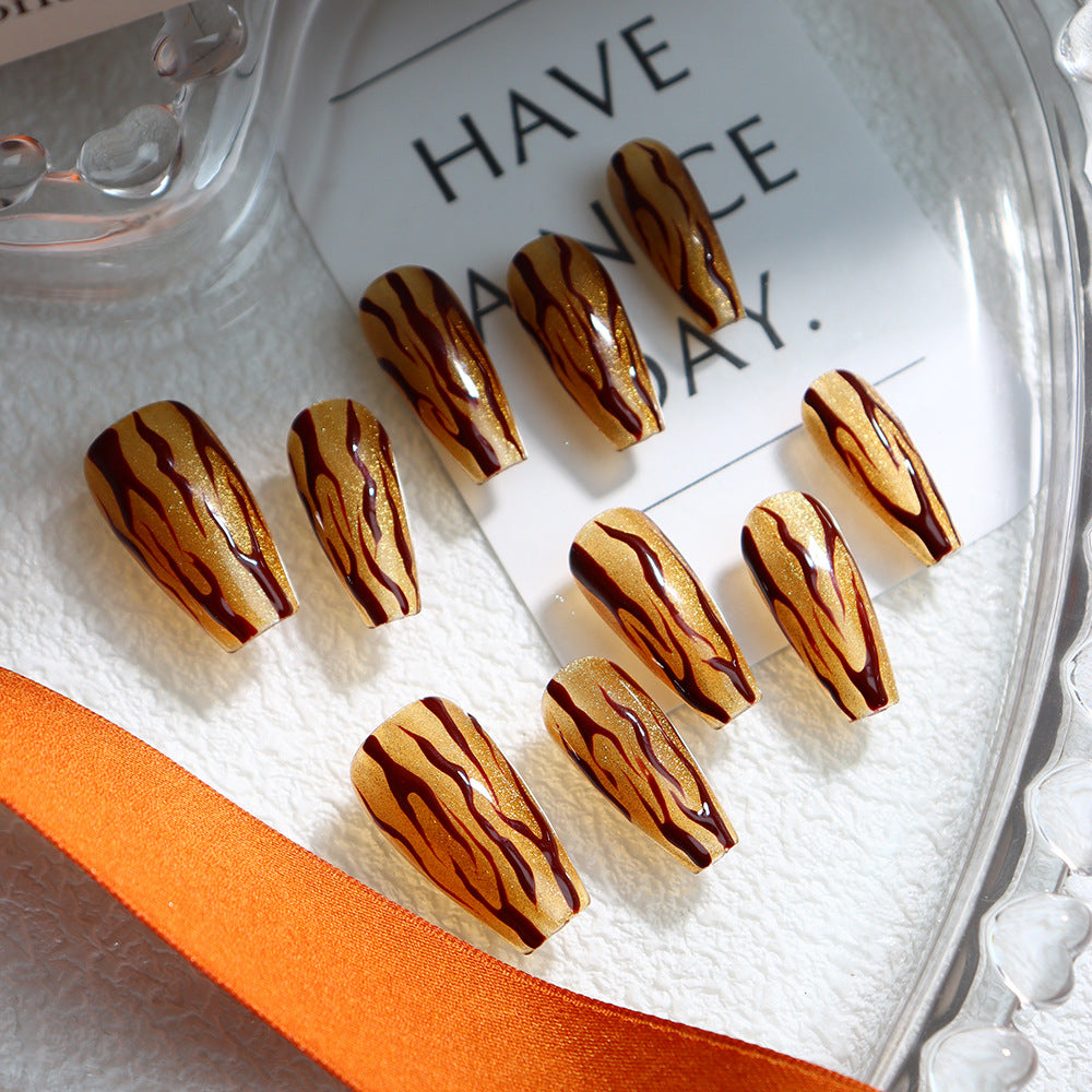Tiger Stripes Handmade Coffin Press On Nails A650