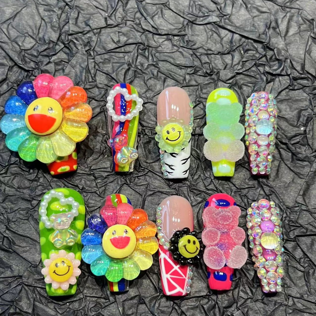 Colorful Sunflowers Handmade Coffin Press on Nails
