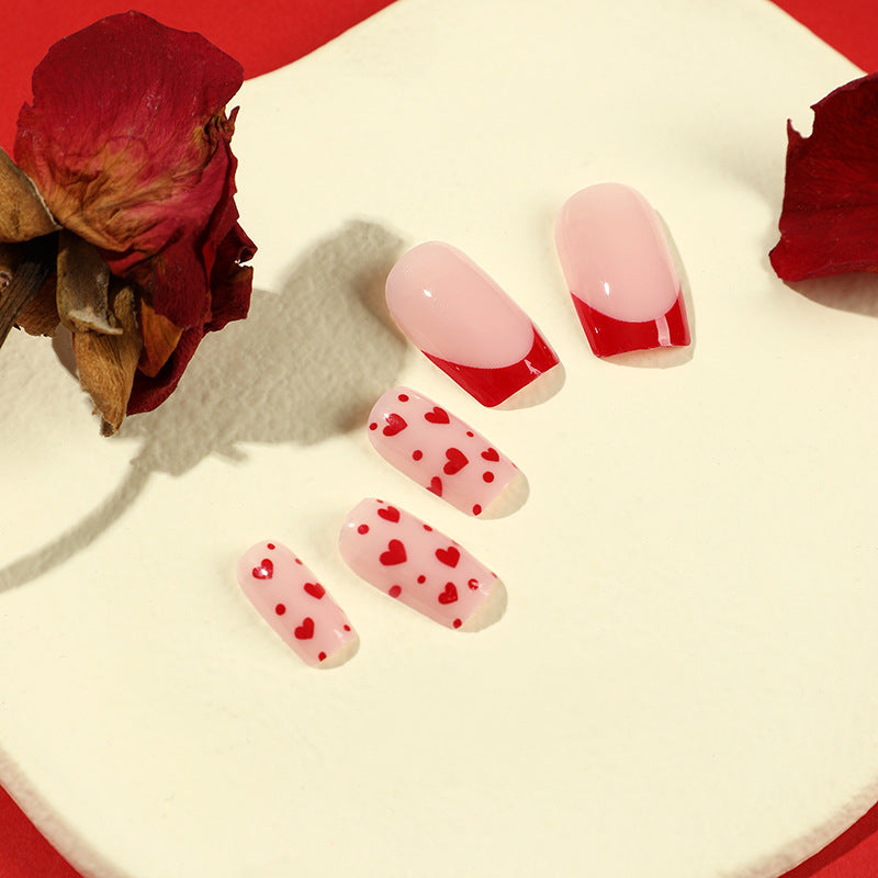 French Red Heart Square 24PCS Free Size Press on Nails JP2249