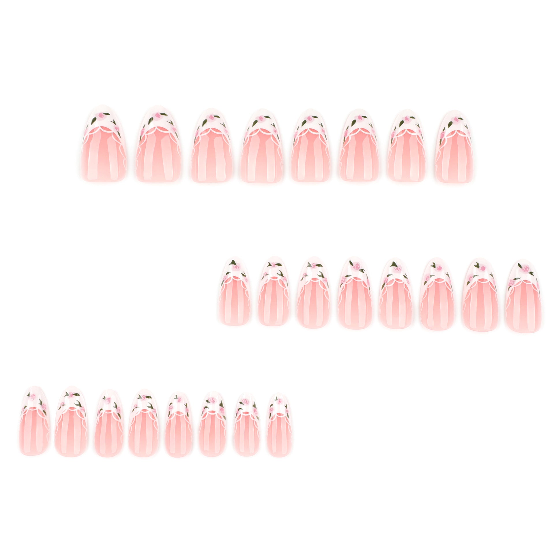 French White Almond 24PCS Free Size Press on Nails JP3914