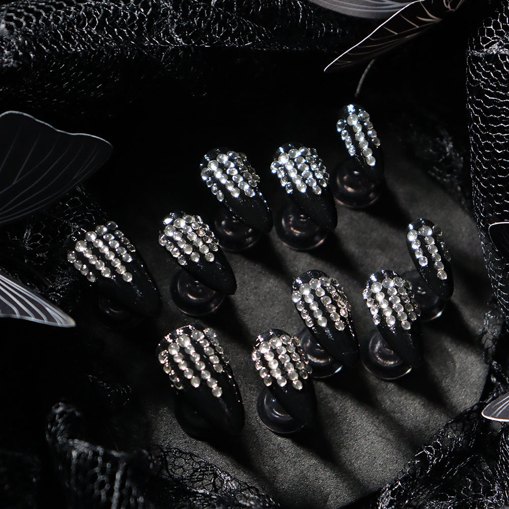 4. Apply one nail at a time. One finger at a time, cover your whole nail with glue, then align the press-on with your nail bed and press down firmly for 20 seconds.