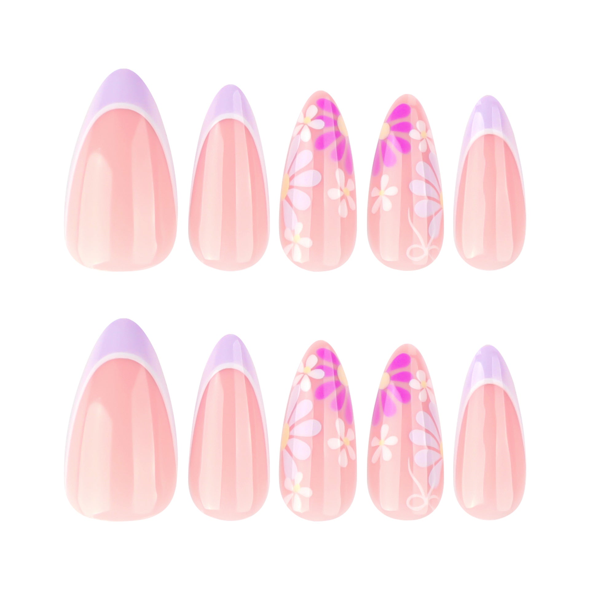 Purple Flowers Almond 24PCS Free Size Press on Nails JP3793
