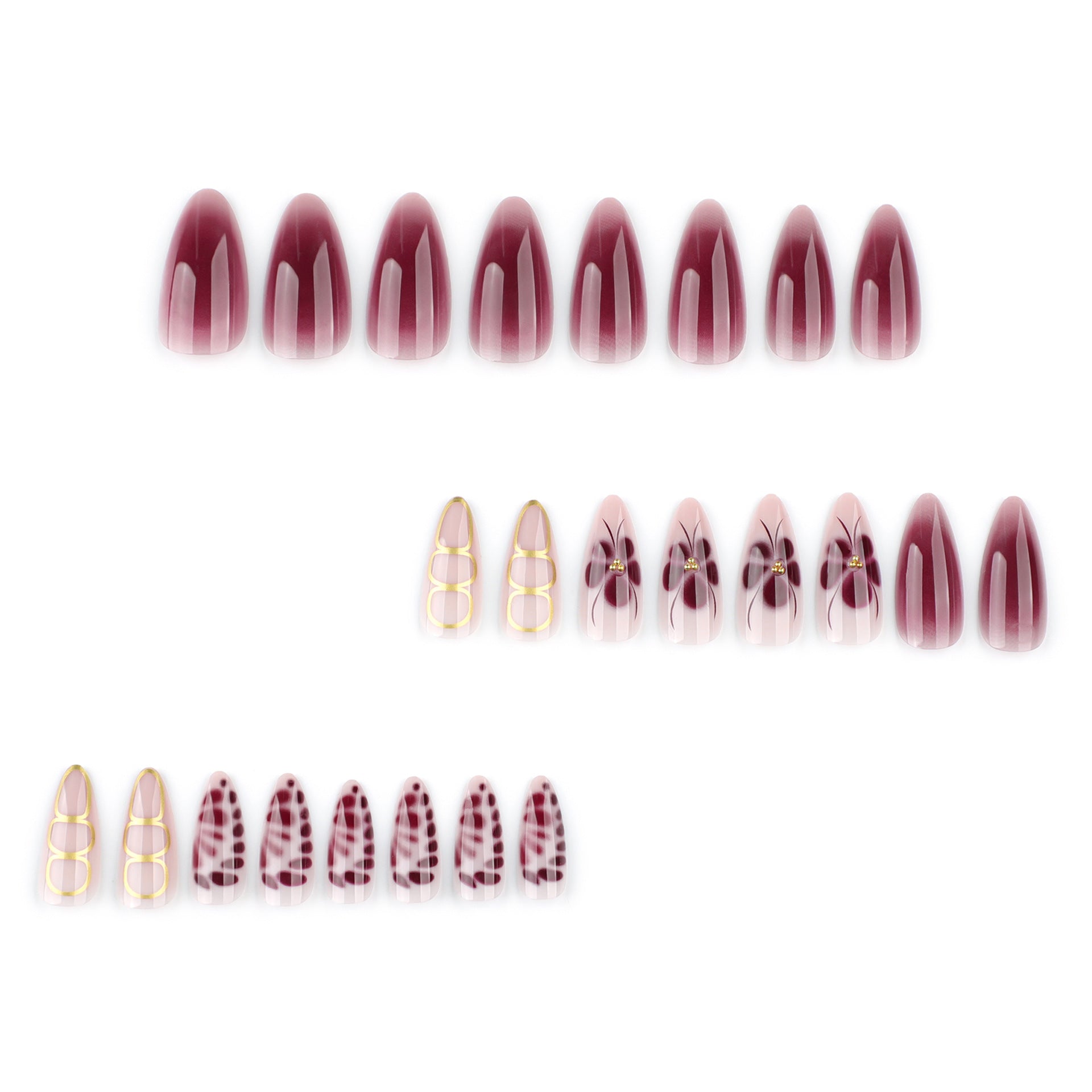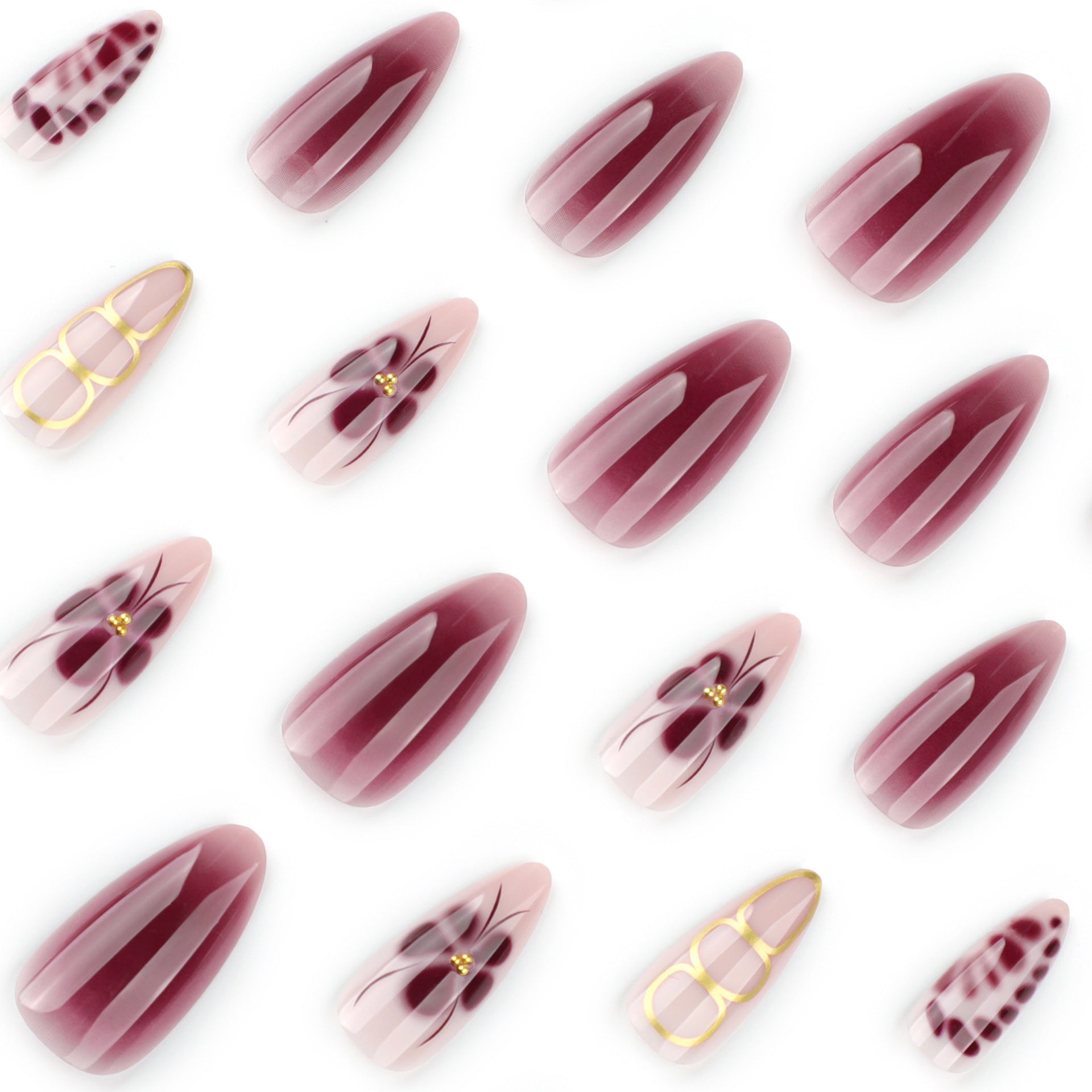 Y2K Claret Blooming Flowers Almond 24PCS Free Size Press on Nails