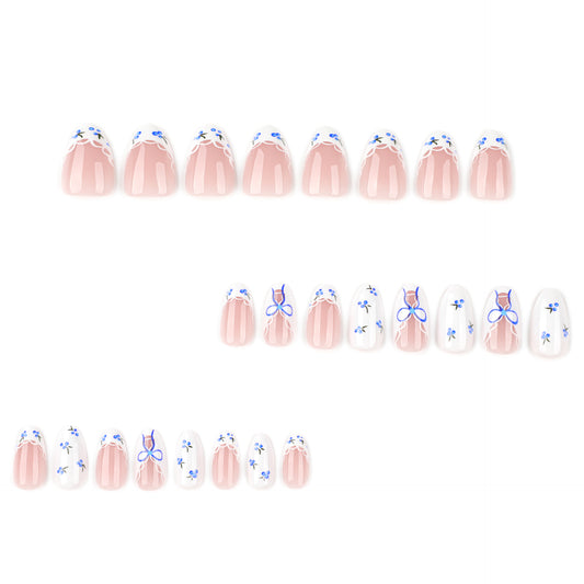 French White Almond 24PCS Free Size Press on Nails JP3914